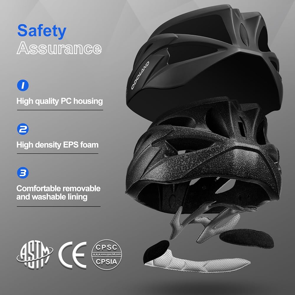 【Fully Ventilated Design】Odoland bike helmet has several good vents to promote strong airflow to keep you cool and comfortable on casual or long bike rides.