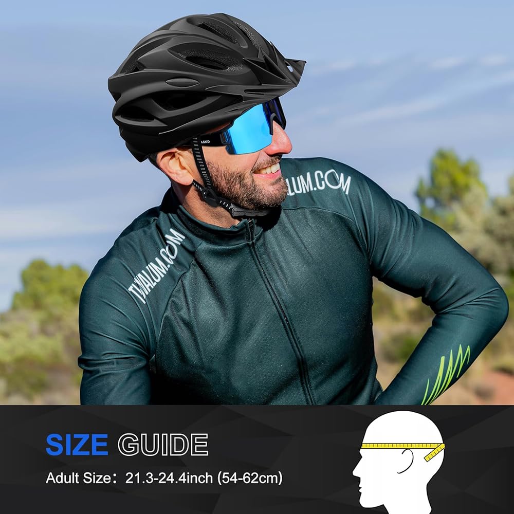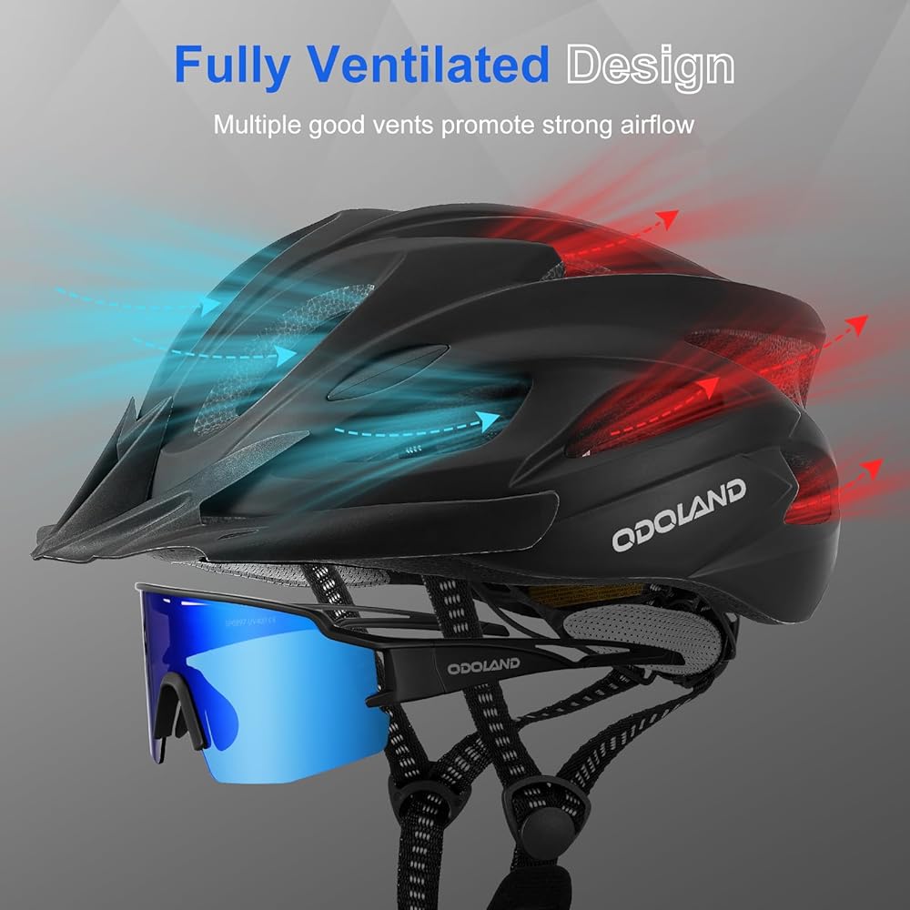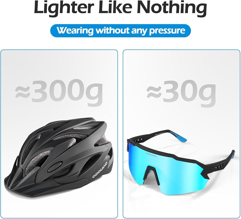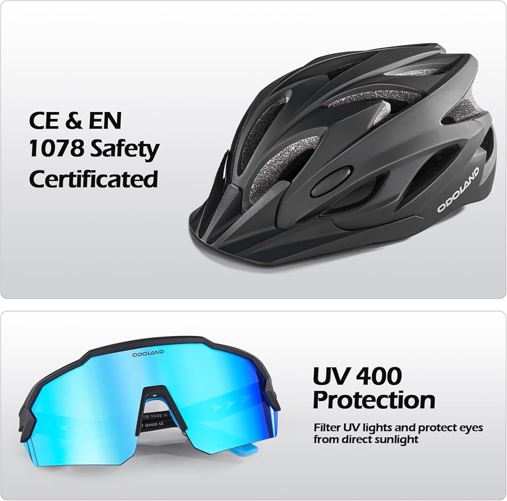 Odoland Adult Bike Helmet and Cycling Sunglasses Set for Men & Women, Safety Certified Bicycle Helmet with UV Protection Glasses for Mountain, Skating, Road, City Commuting & Outdoor Riding