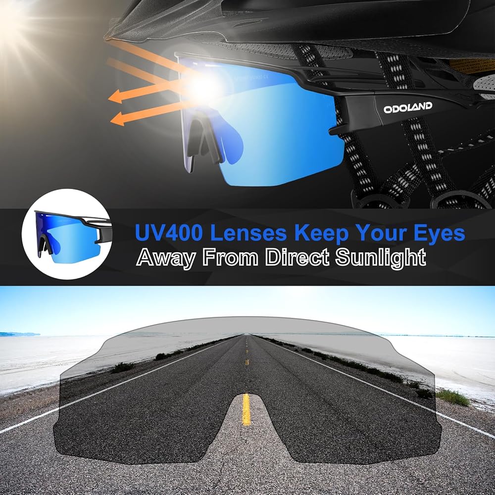 【Reliable Material】Odoland bike helmet is made of high-quality polycarbonate shell and high-density EPS foam with impact-resistant structure to protect your head at all times.The cycling goggles are made of high quality PC material with UV protection to protect your eyes.