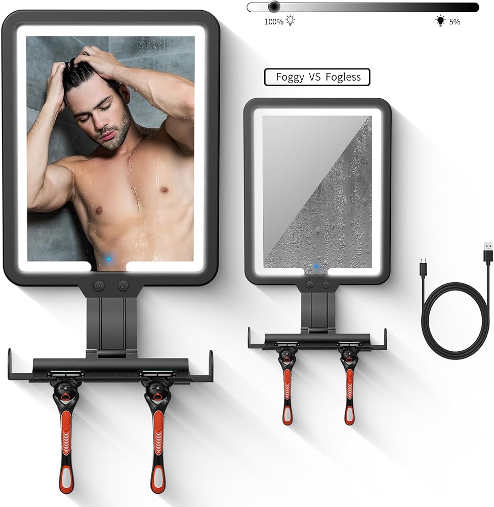 【1 MIN QUICK DEFOGGING】This bathroom mirror shower mirror fogless for shaving adopt Electronic heated technology quick-acting defogging just need about 1 minute to Keep your mirror clear.Say goodbye to the troubles of traditional scraper defogging, pouring hot water, and repeated wiping.Keep your facial details clearly.