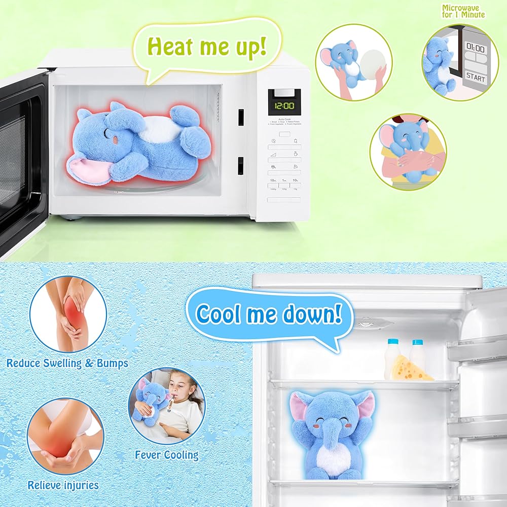 Elephant Microwavable Heating Pad-1.2lb Heating Pads for Cramps &Period Pain Relief for Women & Kids,Soft Pillow Plush Toy,Heatable Stuffed Animals, Bedtime Gift for Women Kids Stuffed Animals