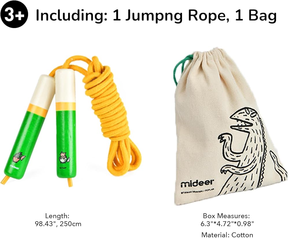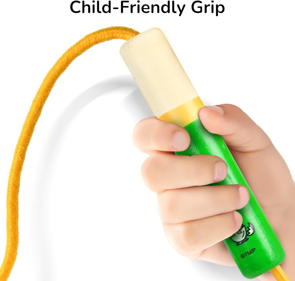 【High-Quality Materials】Made of durable wood and cotton, this jump rope is designed to last, providing a comfortable grip for young users.
