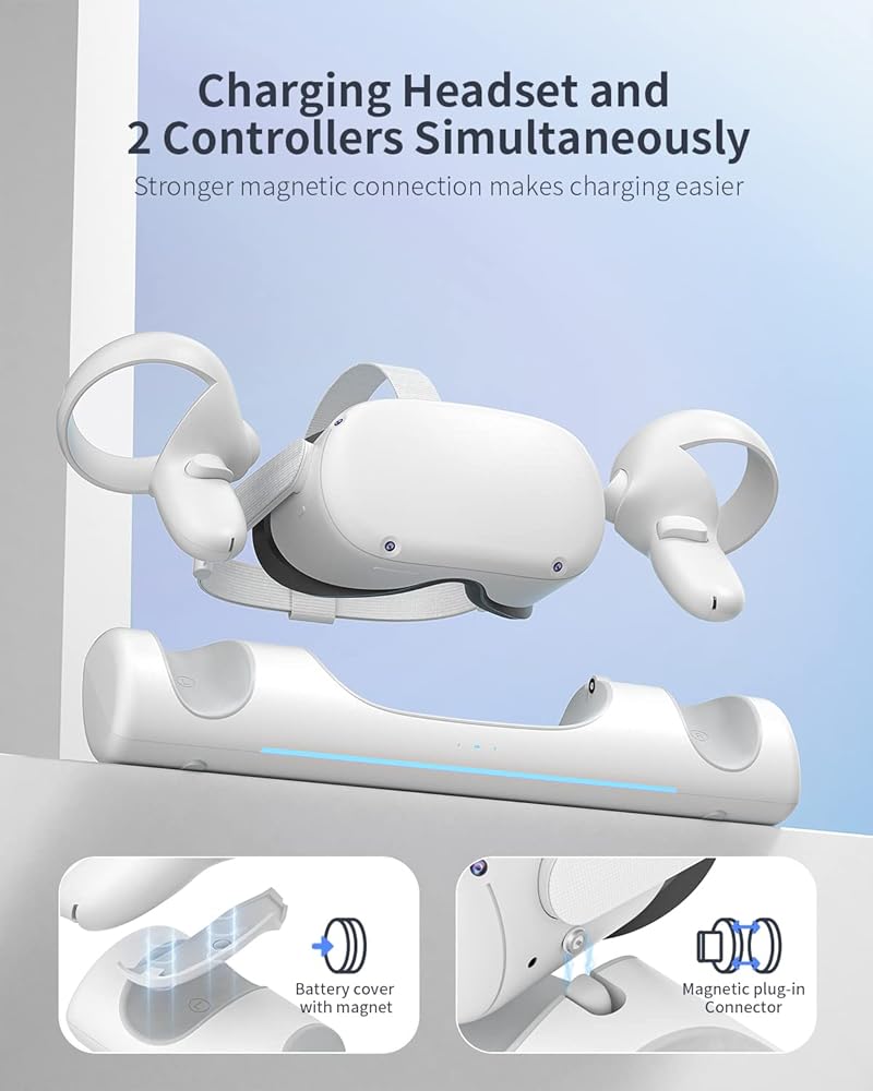 A Must-have Accessory for Quest 2 Enthusiasts: This quest 2 charging dock is specifically designed to simultaneously charge the Quest 2 headset, Elite strap with battery and controllers,making it a convenient addition to your gaming gear.