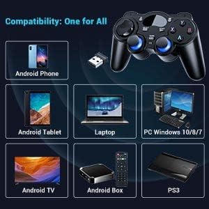 🎮【Wide Compatibility】Wireless gaming controller supports PC (Windows XP/7/8/8.1/10), PS3, Steam, Android (version 4.0 or above, the device must fully support OTG function)