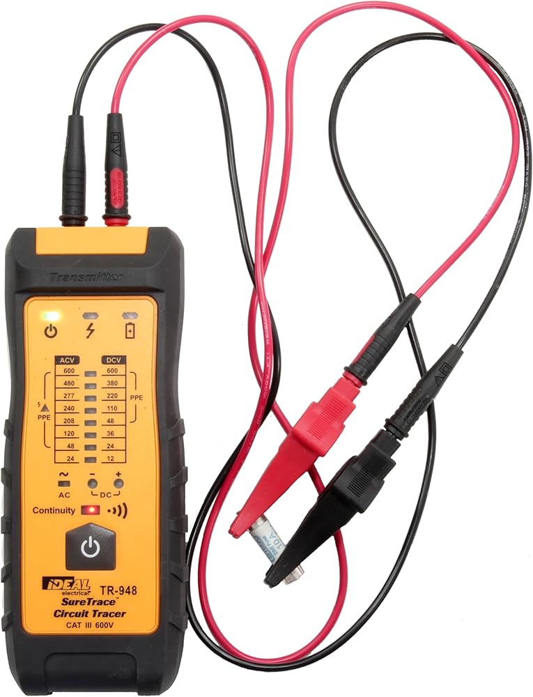 Ideal Electrical SureTrace Plus Circuit Tracer (61-948) 0-600 Volts AC/DC with Built-in Continuity Test and High-Visibility Displays — Find Breakers, Fuses, Wires, Dead Shorts, and Splice Errors
