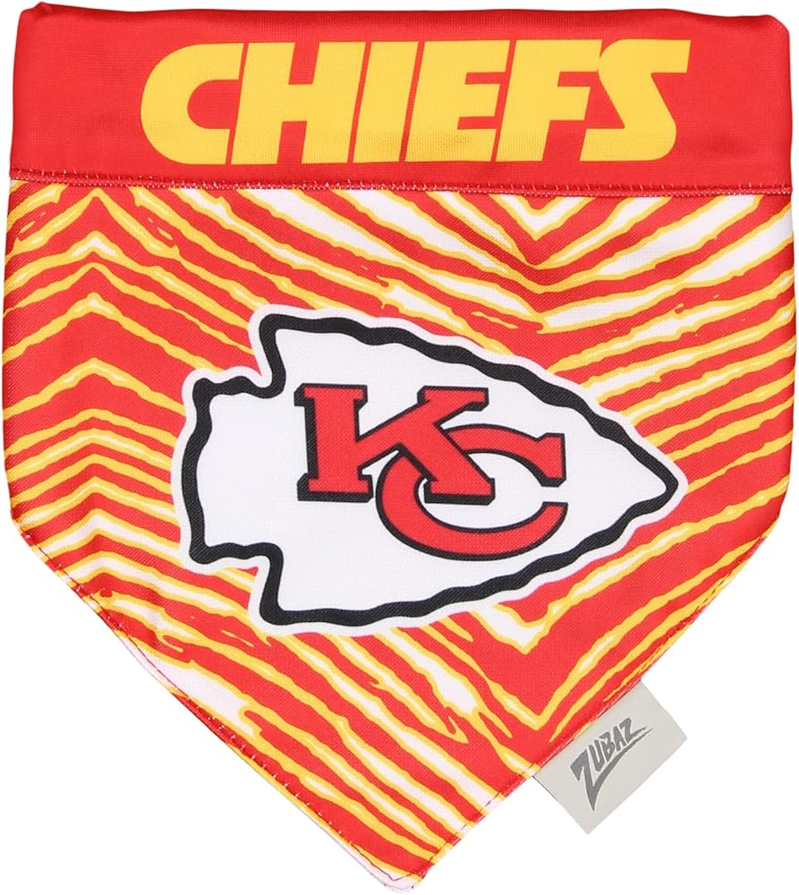 Reversible - 2 sided PET BANDANA, you can rotate the design your PUPPY wants to wear! One side is adorned with screen-printed team logo and Zubaz zebra print, other side is printed with tem logo and name only.
