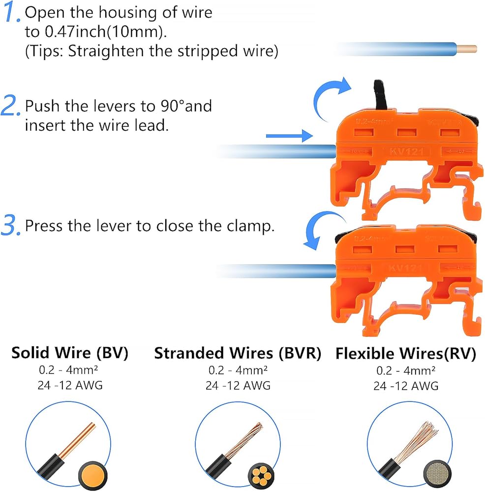 WIDELY USED: Suitable for wire size 0.08~4mm²/AWG28-12. Used to connect braided and solid wires of various sizes, this connector is a versatile tool for various electrical applications, such as household wiring for ceiling fans, sockets, switches, vehicles, motorcycles, ships, loudspeakers, lamps, electrical boxes, chandeliers, light switches, fan controls, and more. With its compatibility to work with most household wiring, this connector is a must-have for those looking to make electrical connections easily and effortlessly.