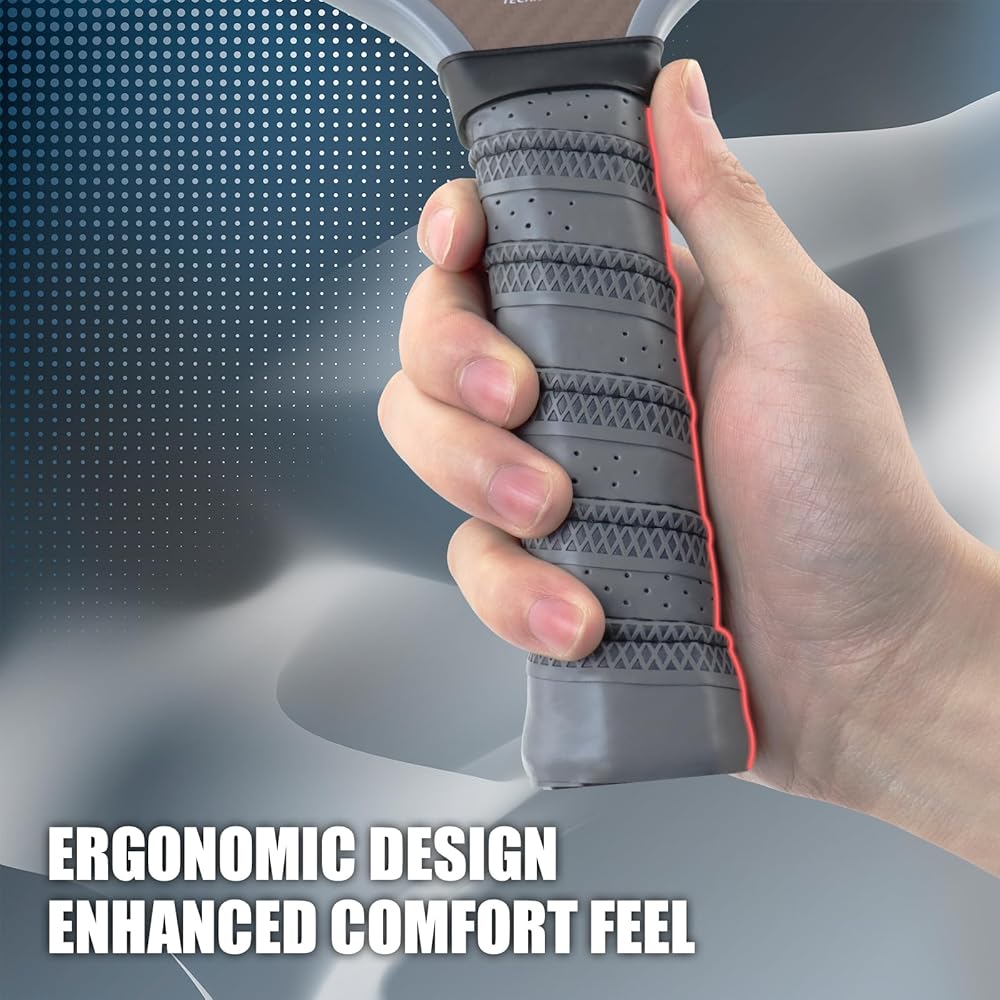 TICKY SURFACE: Tacky feel, soft touch, and moisture absorbency give you confidence in every swing and feel for precision. The grip has a soft, tacky feel that connects you to the paddle.