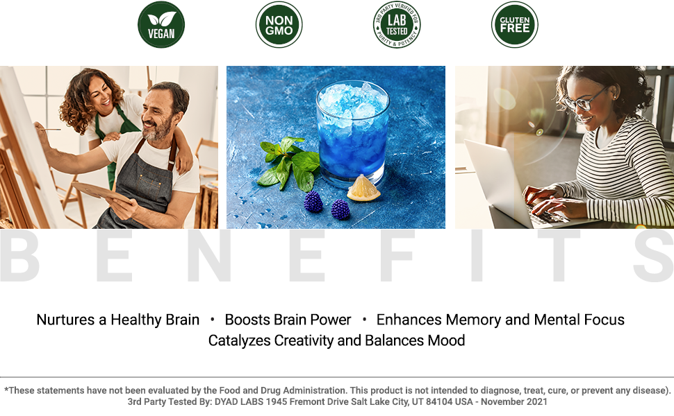 TESTED AND TRUE: Brain Superfood Tonic is 3rd party tested, vegan, has no added grains or filler, and a delicious, natural blue raspberry fruit flavor; Mix 1 scoop of powder into your daily smoothie, water or food; For adult use; 30 servings per pack