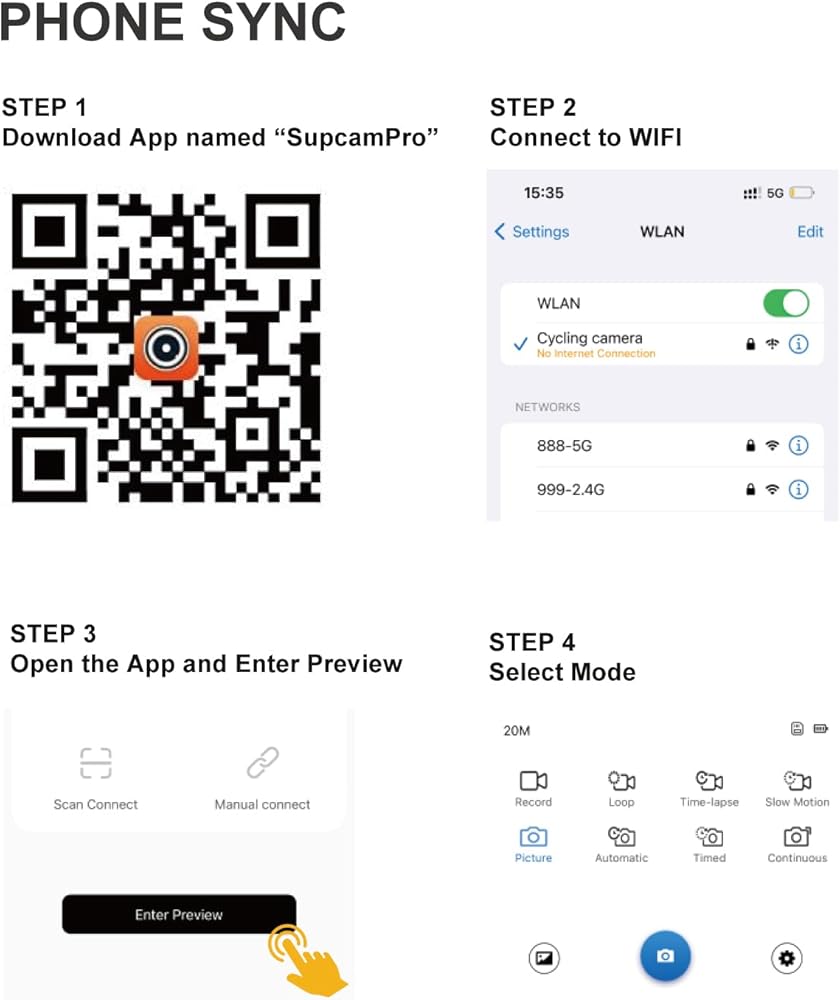 Cycling Cameras: Both photography and video modes, capturing impressive evens during your ride, switching the two modes at any time to suit your demands.