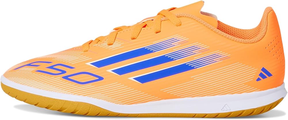 Unlock game-changing speed. These juniors' adidas F50 Club soccer shoes keep you comfortable with a textured synthetic upper. The perforated tongue helps you maintain your cool during the fastest games. And the grippy rubber outsole puts you ahead of the competition on flat indoor surfaces.
