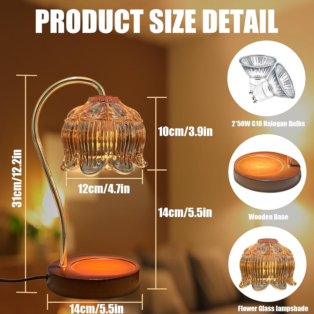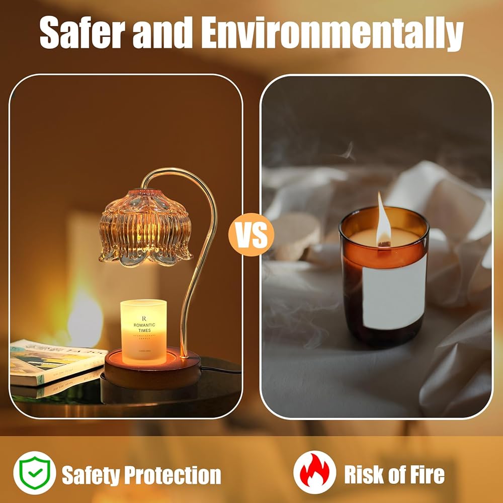 【Safe and Environmentally Friendly】: Our candle warmer lamp features two 50W halogen bulbs that melt candles to release fragrance, without flame, smoke, soot, or pollution. This significantly reduces the risk of fire and burns, making it ideal for both homes and public places.