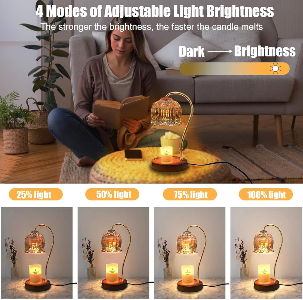 【4-level Brightness Adjustment】: Our candle warmer utilizes stepless dimming technology, offering four brightness levels to choose from. Adjusting the brightness not only affects the visual ambiance but also regulates the melting speed of the candle, thus controlling the intensity of the fragrance. Higher brightness typically accelerates candle melting, releasing a stronger fragrance, whereas lower brightness gently disperses aroma, catering to diverse preferences for fragrance intensity.