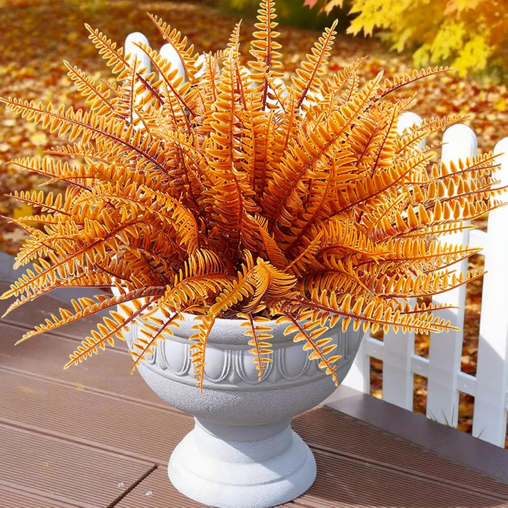Feel the Breath of Autumn: The lifelike mixed orange flowers create a cozy fall ambiance, Gaze this lifelike faux outdoor flowers in sparkling bright autumn orange colors, shining and twinkling, they can lit up your mood, rest your mood and wonder. well made and vibrantly colored look realistic.