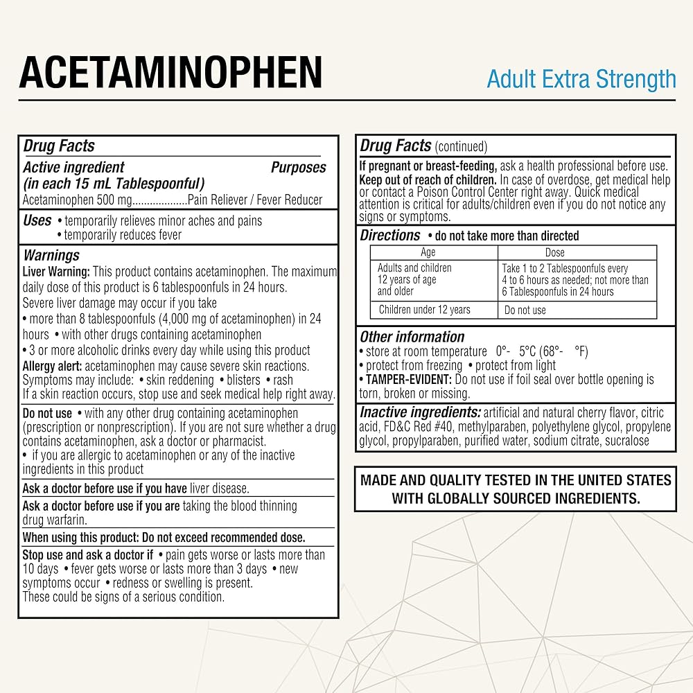 ✅NO ASPRIN: Each dose contains 500 mg of pain relieving, fever reducing acetaminophen without any aspirin. This aspirin-free arthritis pain relief, back pain relief, joint pain relief, and muscle pain relief medicine is formulated in cherry flavor liquid.