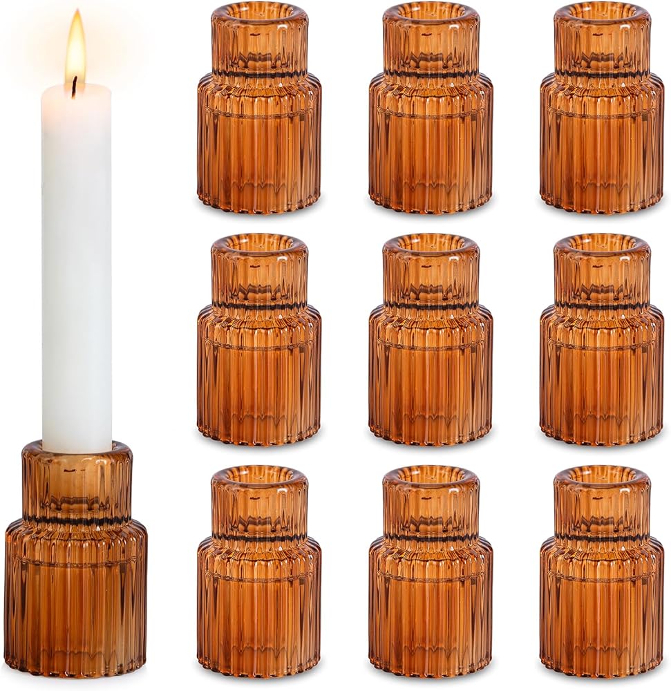 Small Glass Candle Holder: simple design and modern look, add a touch of stylish to your home decor; they are basic yet attractive, go well with any colored candles and any table decor