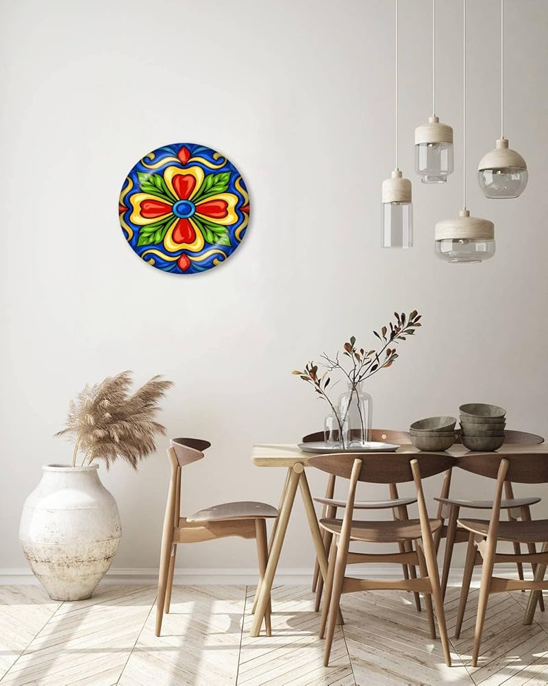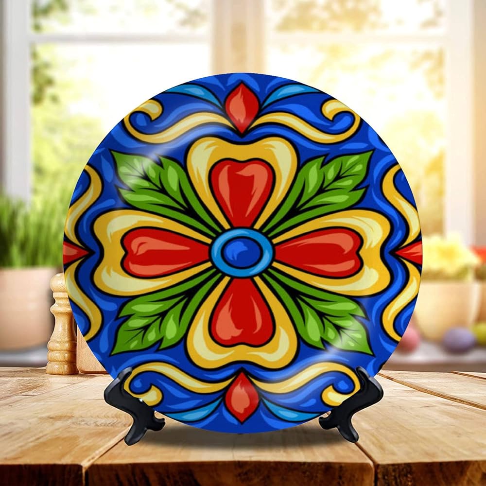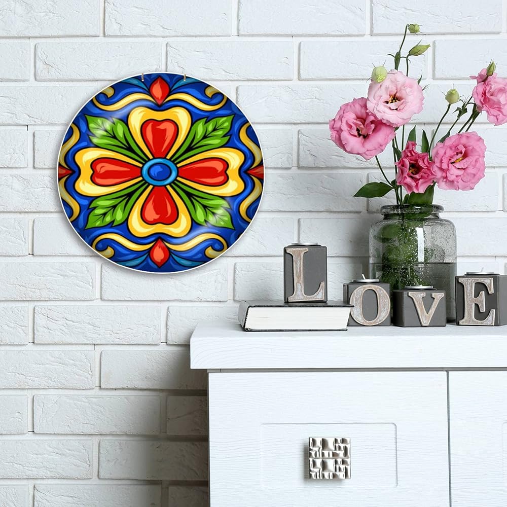 Decorative Plates Mexican Talavera Ceramic Tile Wall Decor Ceramic Ornament with Display Stand and Hook Up for Festival, Parties, Wedding 10", Collector Plate