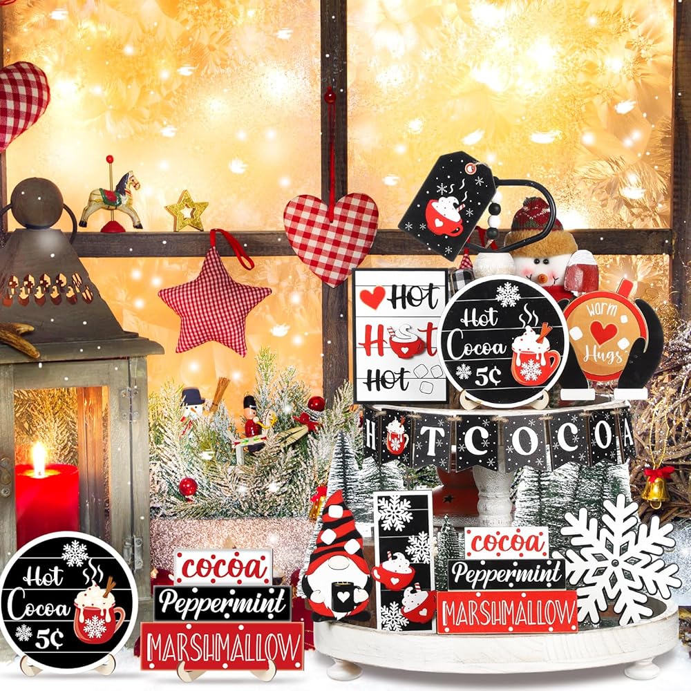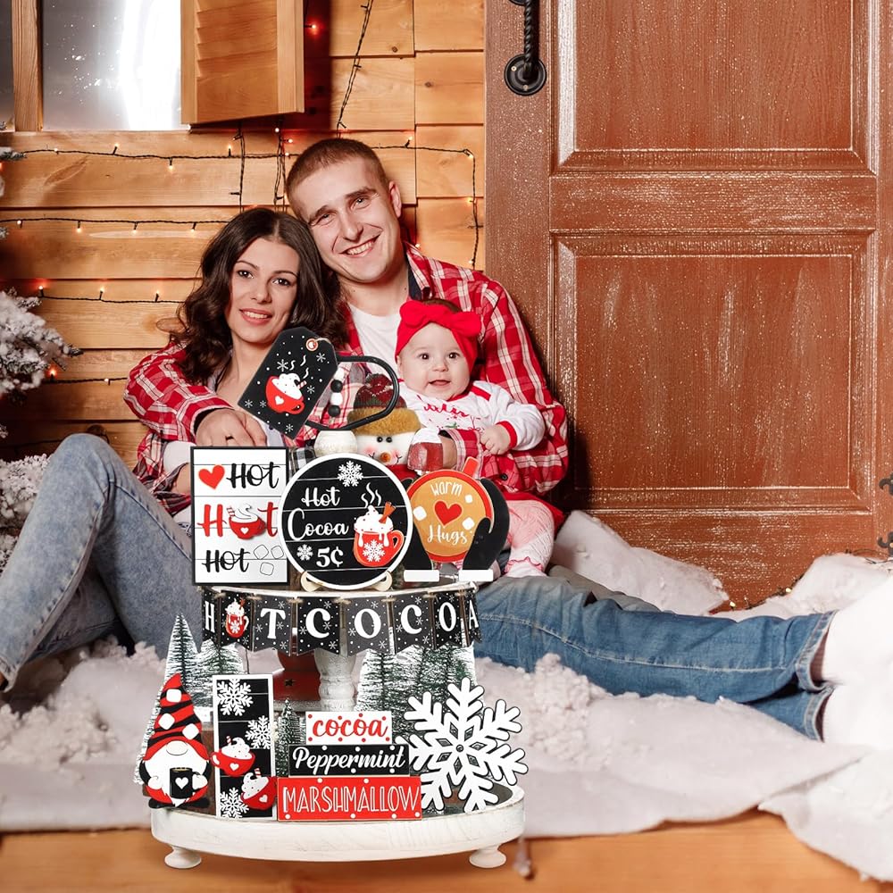 The Christmas decor for tiered tray adopts suitable size, can easily attract people's attention yet will not take up much space of your wall or table, cute and elegant, adding some interesting atmosphere.