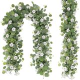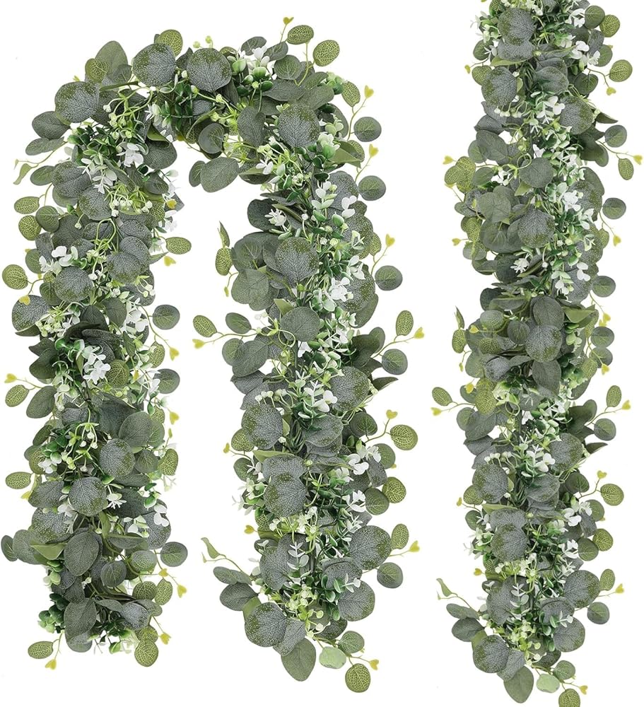 𝙉𝙞𝙘𝙚 & 𝙁𝙪𝙡𝙡 & 𝘽𝙚𝙖𝙪𝙩𝙞𝙛𝙪𝙡: Discover the beauty and vitality of life in our charming mix of eucalyptus garland! Our faux eucalyptus garlands mixed eucalyptus leaves and boxwood leaves together, which makes the whole vine look full, beautiful and filled with rich layers. The vibrant display of greenery garland interspersed with gentle white blooms adds a natural, elegant touch to any decor.