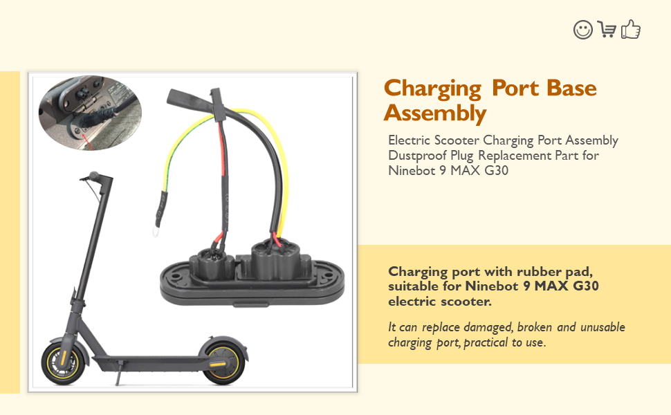 【GOOD REPLACEMENT ACCESSORY】Charging port assembly not original, but suitable replacement. Strictly follow the manufacturing standard to make sure excellent performance. Note that if your scooter is not charging, it can be down to faulty board or discharged batteries.