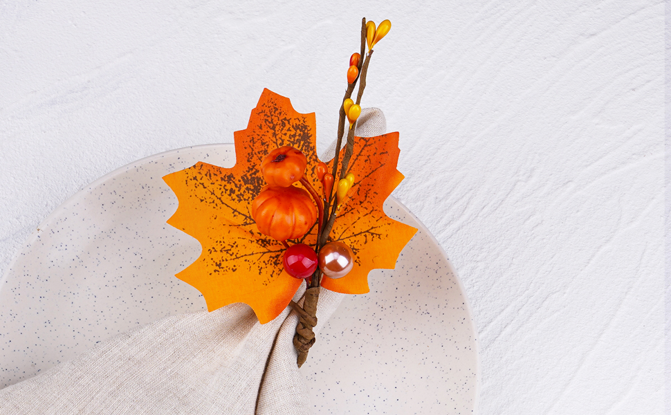 Size for Easy Use: These pumpkin berry maple leaves napkin rings measure approx 6.2 × 4.1inches . The appropriate size and layout can easily attract people's attention. It can be applied to table, they can also be regarded as wedding decors to adorn your wedding bouquet, door, window, curtain and so on