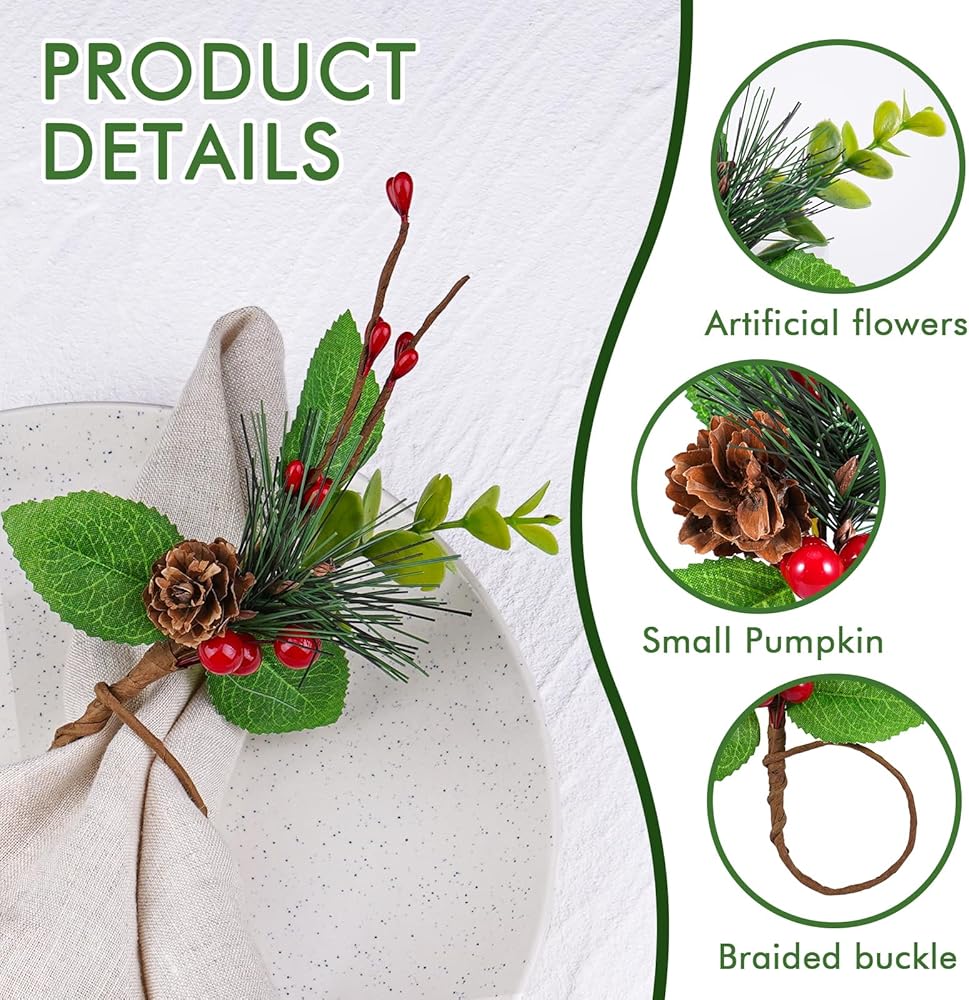 Package Include: The package includes 12 pieces of harvest napkin rings pumpkin berry maple leaves napkin holders, exquisite fall themed napkin rings, sufficient quantity to meet your daily needs and festive table decorations, also enough for you to share the joy with your friends