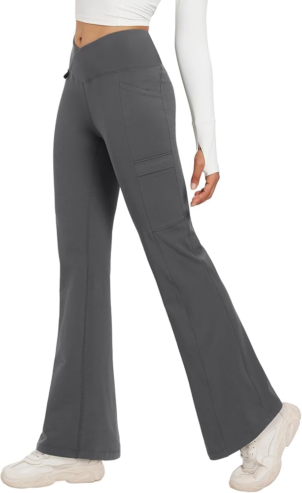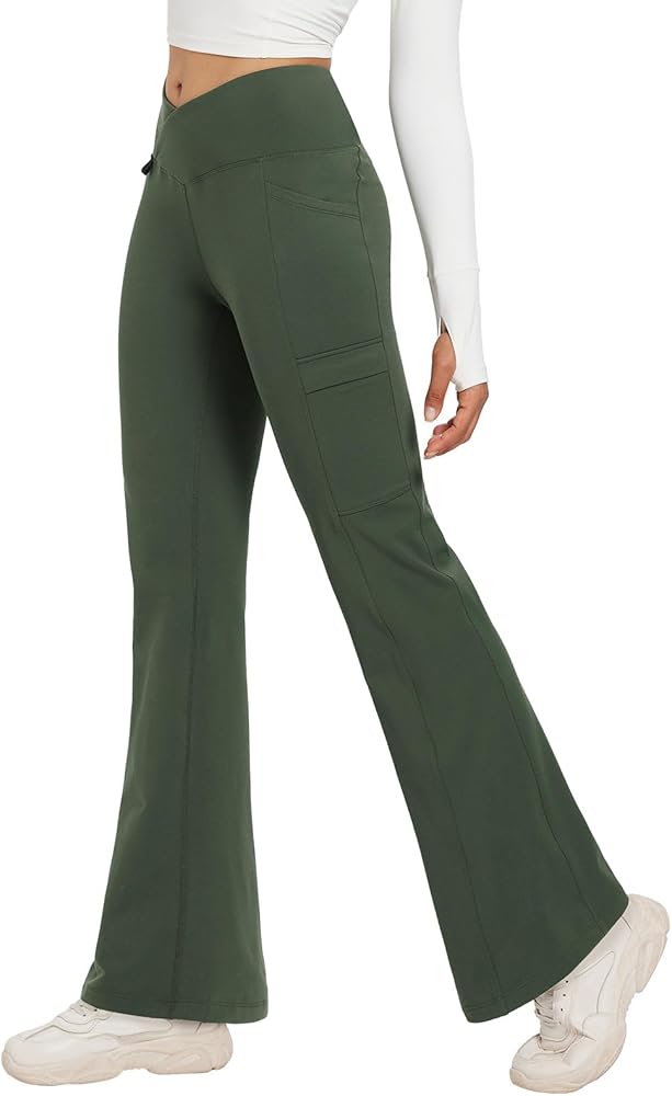 Slightly Flare & Cross-Waist: Petite 27" inseam slightly flare leggings with V crossover waist making it more stylish, flattering. Slightly flare Leg effectively helps hide the defects of the calf, and creates the contour and slender appearance of the popular line.