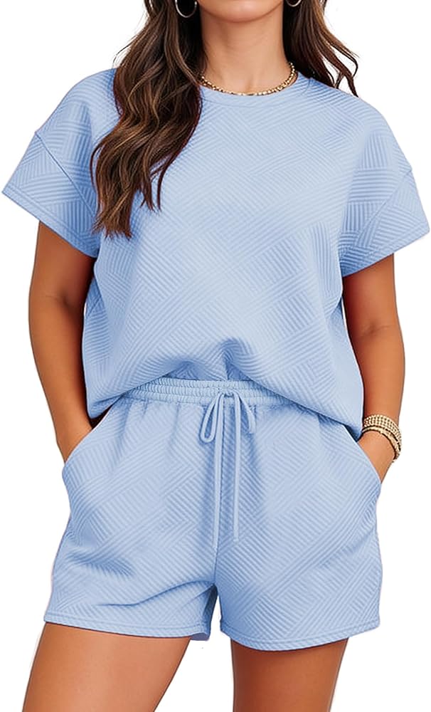 STYLE:Casual two piece outfits for women, crew neck, pullover top, drawstring waist shorts, thick textured sets, solid color, loose fit, skin friendly. Fashion look! womens sweatsuits 2 piece set/ shorts sets women 2 piece outfits /sweat suit for women 2 piece set