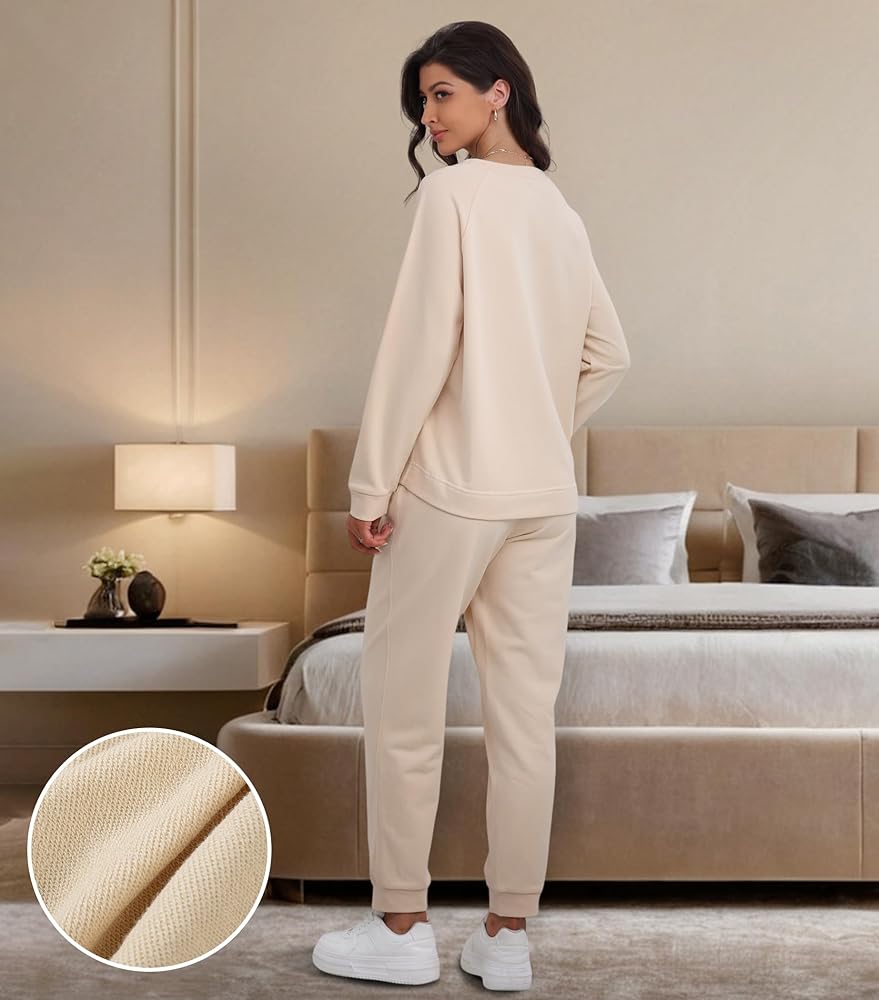 💫【Comfortable Fabric】The women's lounge set is made from Premium blended cotton material, offer moderate elasticity and no sense of restraint, providing freedom of movement. A must-have set for your wardrobe.