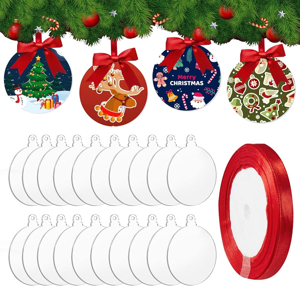 DIY Christmas Craft Ornaments: You can use these blank acrylic round ornament to DIY your favorite decorative crafts to decorate the Christmas tree,create wonderful memories