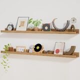 【Practical Picture Ledge Shelf】Unlike other floating shelves, our floating shelves are thoughtfully designed with a protective wall shelf on the front to effectively prevent items from falling. They can hold books, CDs, speakers, photos, trophies, toothbrushes, trinkets, alarm clocks and decorations securely. They can also be used as spice racks, photo racks, plant racks, and more!