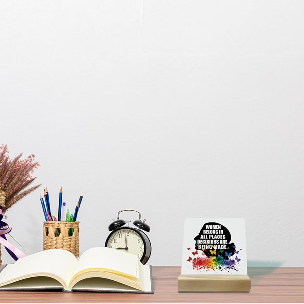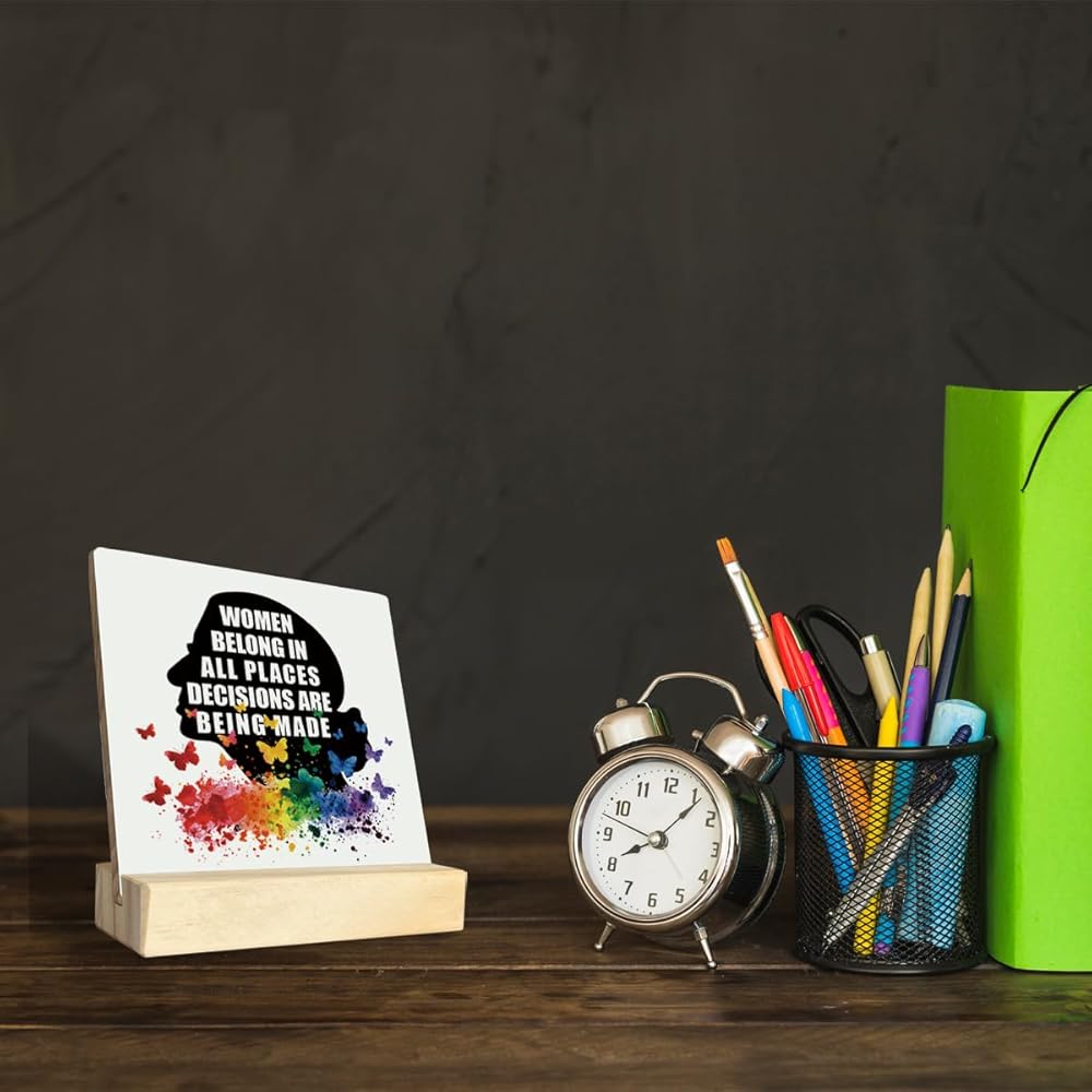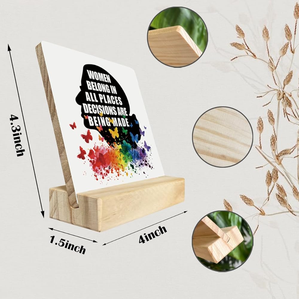 Feminist Wood Plaque Gift, Women Belong In All Places Where Decisions Are Being Made, Plaque with Wooden Stand, Wood Sign Plaque Gift, Ruth Bader Ginsburg, RBG Woman's Rights B1