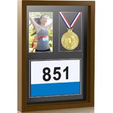 This 3-in-1 shadow box for medals is an ode to your hard-earned accomplishments. With its clear, polished glass panel and black solid wood frame, each award will be displayed in its glory, capturing the wonderful moments of your journey and attractively showcasing your achievements.
