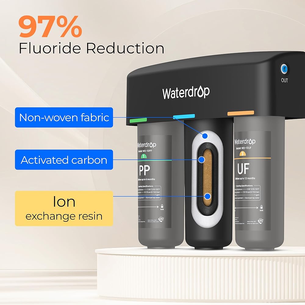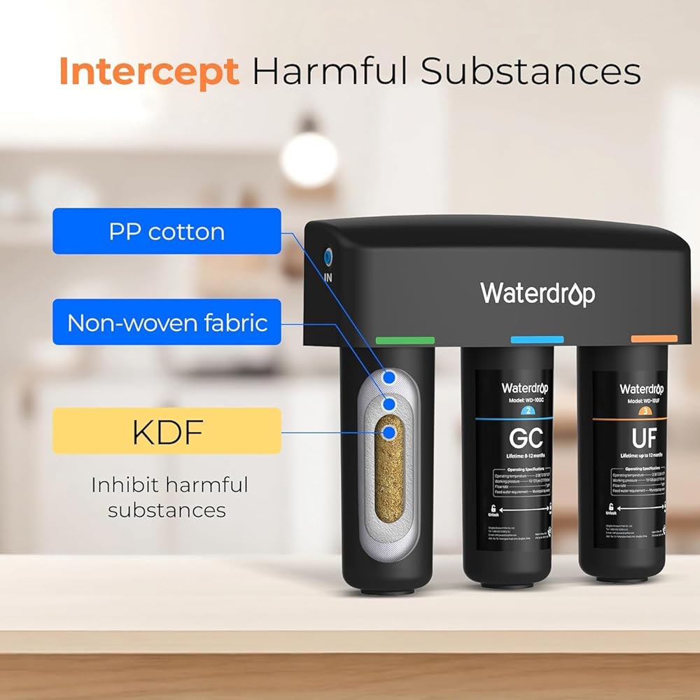 Waterdrop WD-TSA-UF 0.01 μm Ultra Filtration Under Sink Water Filter, Under Sink Water Filtration System 9 Stage Filtration, Reduces Chlorine, Taste and Odor, Fluoride, Advanced USA Tech