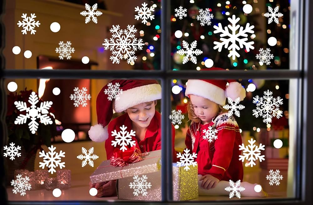 Material: Christmas window clings are made of premium removable PVC material, no glue, eco-friendly and no smell, waterproof, stick to the window easily and peel off without residue, will not hurt your window. These Snowflake window clings decals ornaments is a perfect choice to decorate your window, glass door and winter wonderland party.