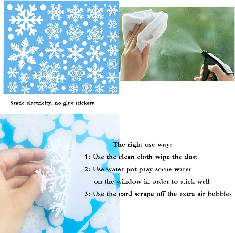 How to use the window clings: 1: Use the clean cloth wipe the dust 2: Use water pot pray some water on the window in order to stick well 3: Use the card scrape off the extra air bubbles. Application for Any smooth surface: these snowflake window sticker works on any smooth surface, such as tile, glass, smooth wall, sliding glass door, shop window and so on. Put the window clings decoration on the smooth window and take you into the wonderland.