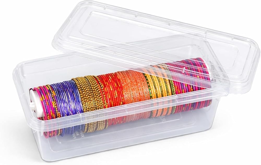 Bangle Box For Women,Jewellery Box For Travelling,Boxes For Storage Plastic Big Size Portable Chudi Organizer For Travel Transparent Organiser,Now organize your bangles systematically and protect them from breakage. The unbrekeble bangle box transparent box gives convenience to better visibility.Bangle box of latest design which can also be used as jewelery box and cosmetic box. Multipurpose: Storage box for watches, bracelet, fitness tracker and other jewellery, Perfect box to keep your stuff organized Material: Bangle box is made of plastic which provides good transparency. Package Contains: Rod can be added or remove as per our need Helps to keep your things neat and orderly. *Spacious bangle box 1.Bangle box of latest design which can also be used as jewelry box and cosmetic box . 2.Storage box for watches , bracelet, fitness tracker and other jewelry 3.Perfect box to keep your stuff organized *Transparent bangle box 1.Bangle box is made of plastic which provides good transparency 2.Rod can be added or remove as per our need 3.Helps to keep your things neat and orderly *Portable bangle box 1.Easy to carry 2.lid to keep your jewelry organized and secured 3.matte finish structure for rigidity *Multipurpose storage box 1.Unique Multipurpose Transparent Accessories Plastic Storage Box With Detachable Rods 2.Rectangle plastic storage box can be used for storing anything like accessories , jewellery , bangles, bindi , ruffels, cosmetics and many more **Now organize your bangles systematically and protect them from breakage. The unbrekeble bangle box transparent box gives convenience to better visibility. Bangles organisers storage box You can use the box in the drawer too and can use in the travelling.