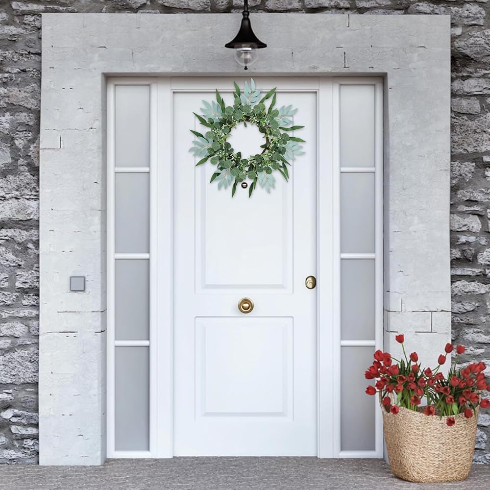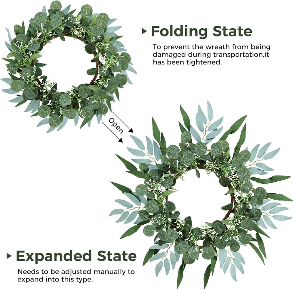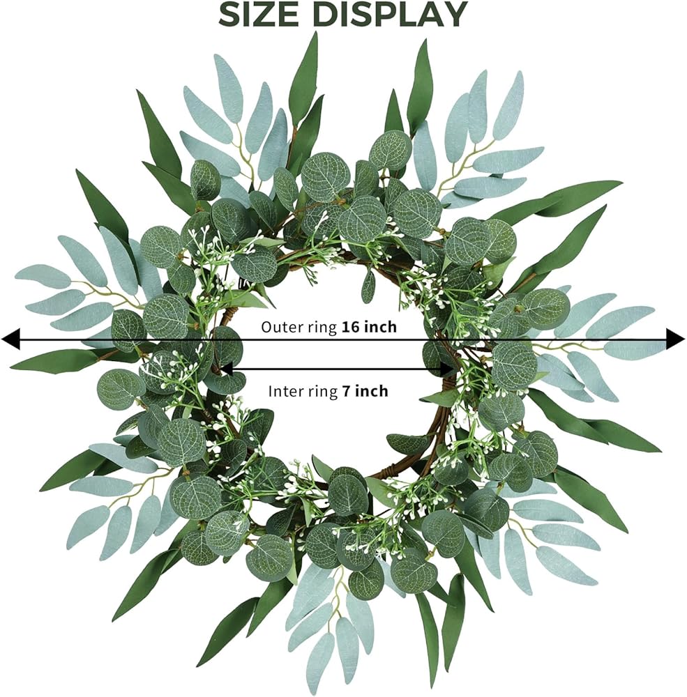 【Perfect Decoration】: The artificial eucalyptus wreath for the front door is suitable for all seasons and is suitable as a wedding wreath, welcome wreath, etc. Of course, it is also suitable for windows, fireplaces, living rooms, porches, living rooms, hotels, center parties, wedding scenes, wedding cars, villas and wall decorations, photography backgrounds, holidays and festival celebrations. It will bring a pleasant atmosphere all year round
