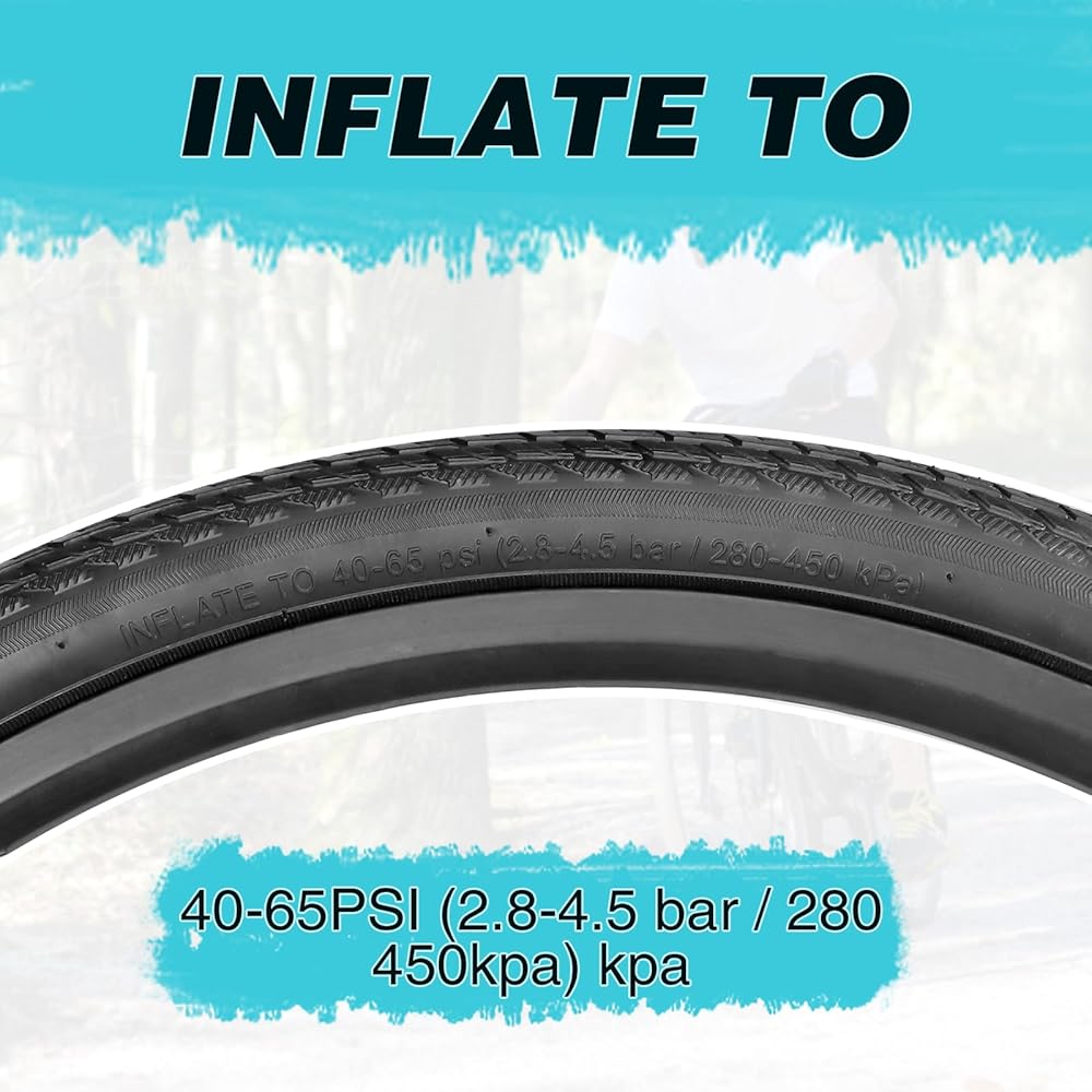 Bike Tire size: 26x1.75 Inch; Tire pressure range: 40-65 P.S.I ,2.8-4.5Bar (280-450 Kpa). ETRTO: 47-559 mm.