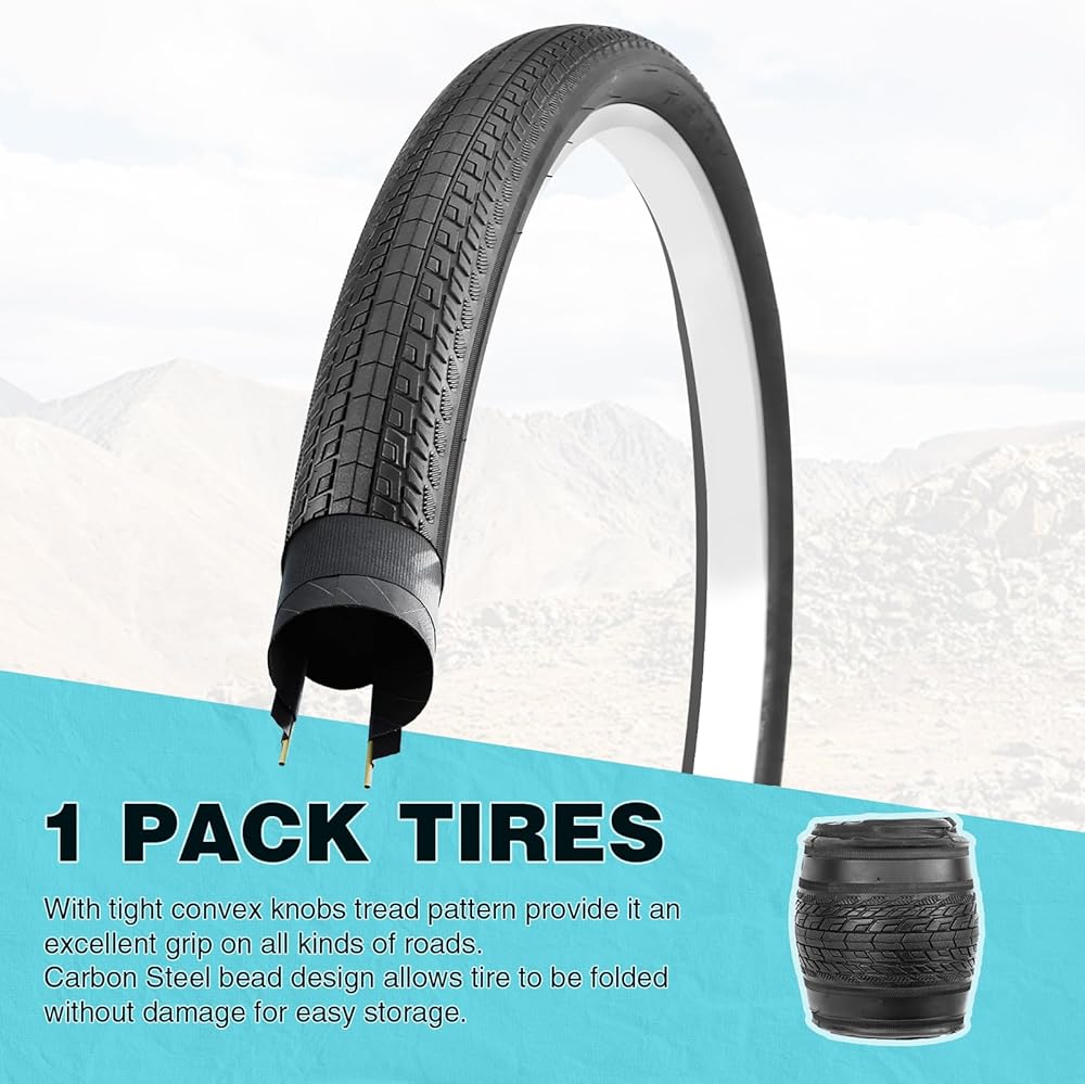 The package includes 2 bike tires and 2 tire levers for for Mountain Bike Folding Bike Cruiser Bike.