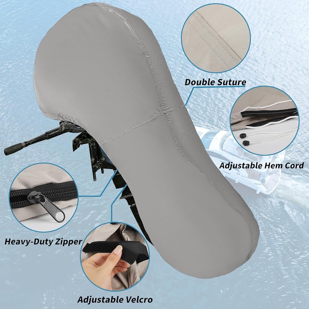 [Durable Material] -Made of 600D PU with waterproof coating.Thicker material and double-stitched design ensure our outboard covers can work for a long time. Full coverage protects your engine from rain, wind, snow, fog, dust and scratch.