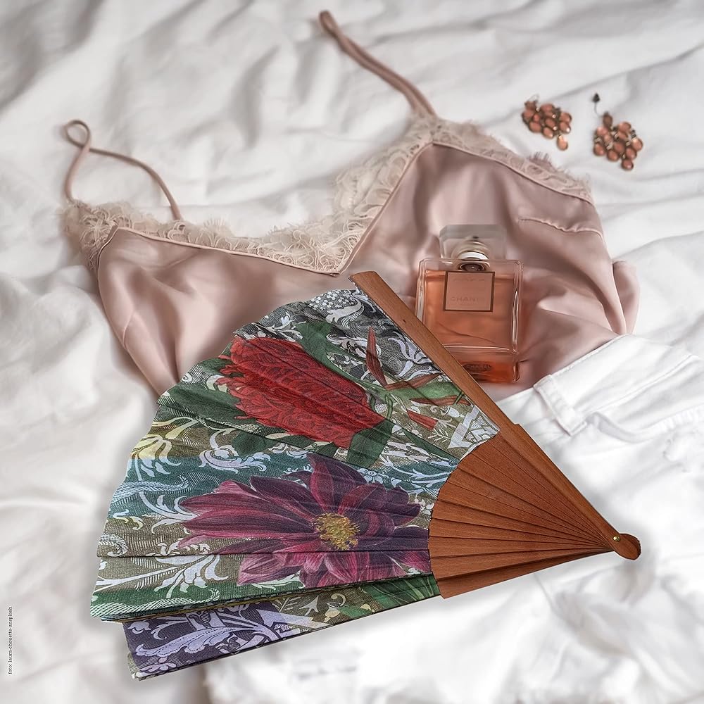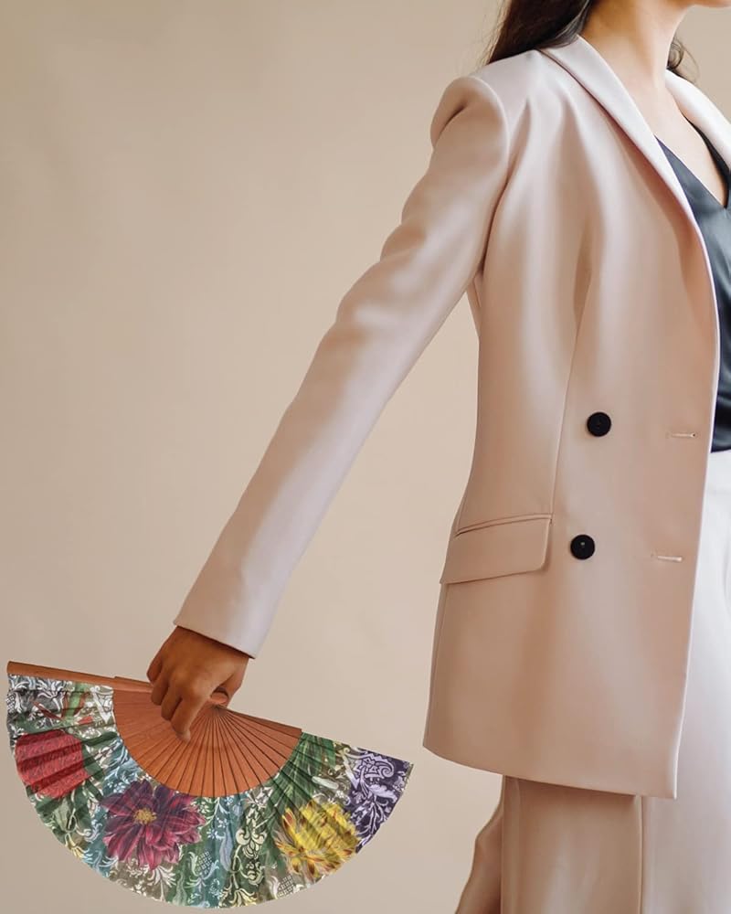 • 🎨 Artistic Inspiration: A fusion of fashion and art, each hand fan from Tusitala Barcelona showcases a vibrant, multicoloured design, turning a simple gesture of cooling into a display of style, perfect for adding a touch of sophistication to your ensemble