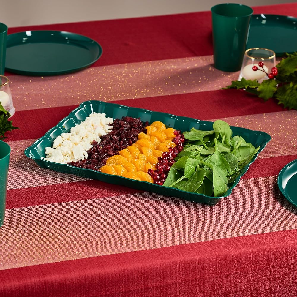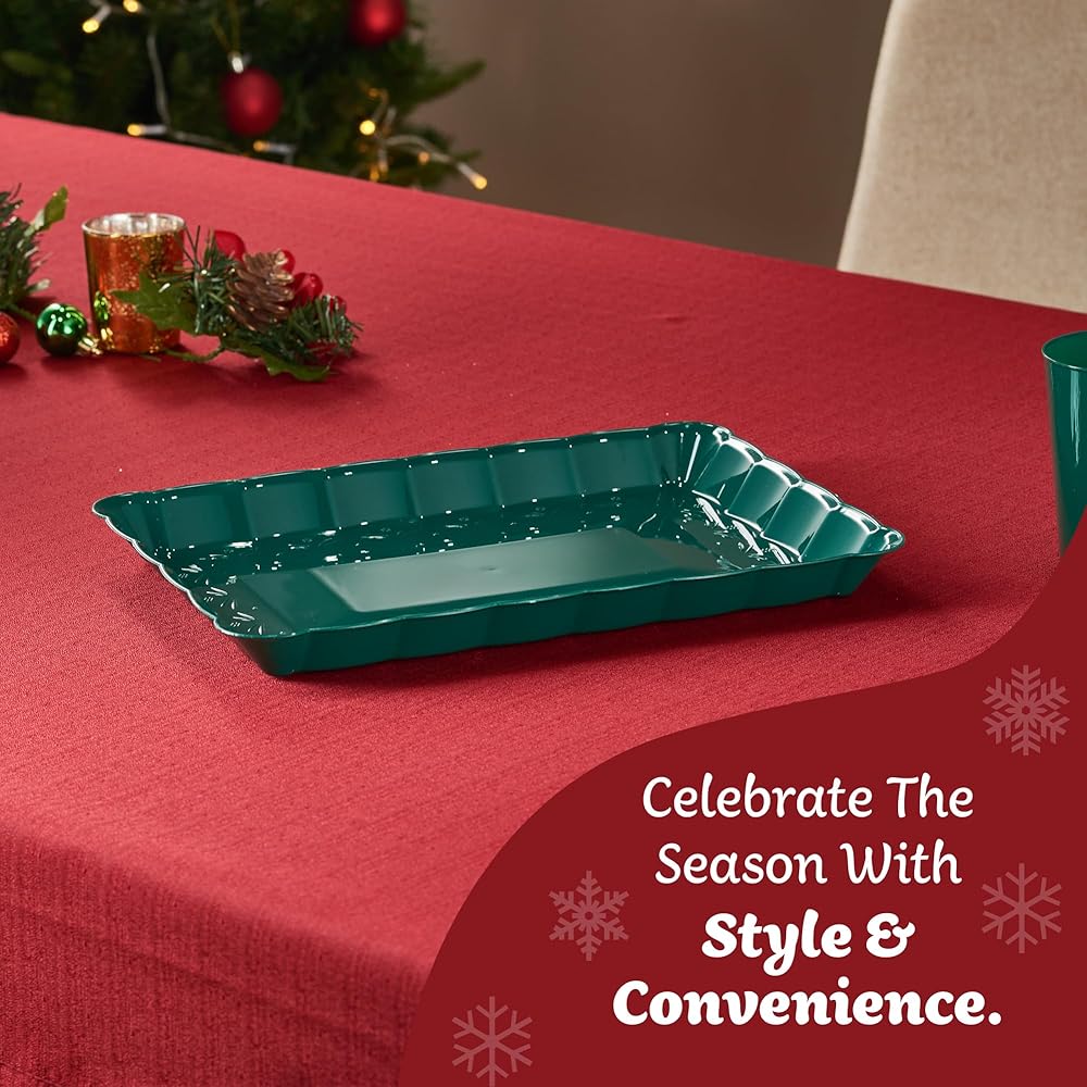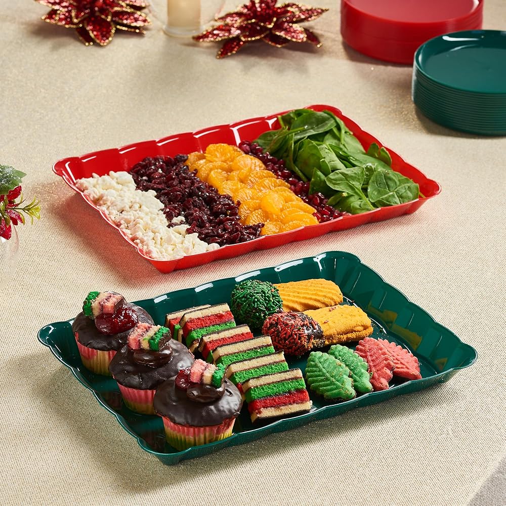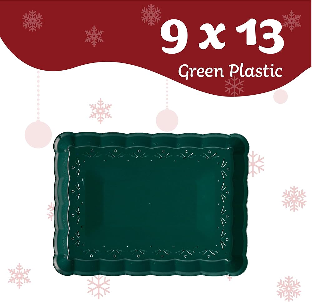 Plasticpro Rectangle 9x13 Durable Plastic Serving Trays - Disposable Platters Great for use for Cake, Fruits, Snacks, Desserts, & Treats, Also Great Use As Middle Center Plate/Dish or for Buffet Style Party's And for Every Day Use