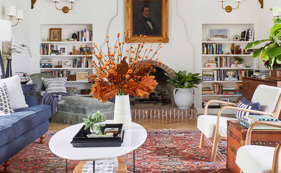 【Note】We recommend decorating these fall stems indoors and in covered areas to avoid prolonged direct sunlight and rainy weather.If you have any questions about our products,please feel free to contact us,we guarantee to reply within 24 hours and provide you with a satisfactory solution.