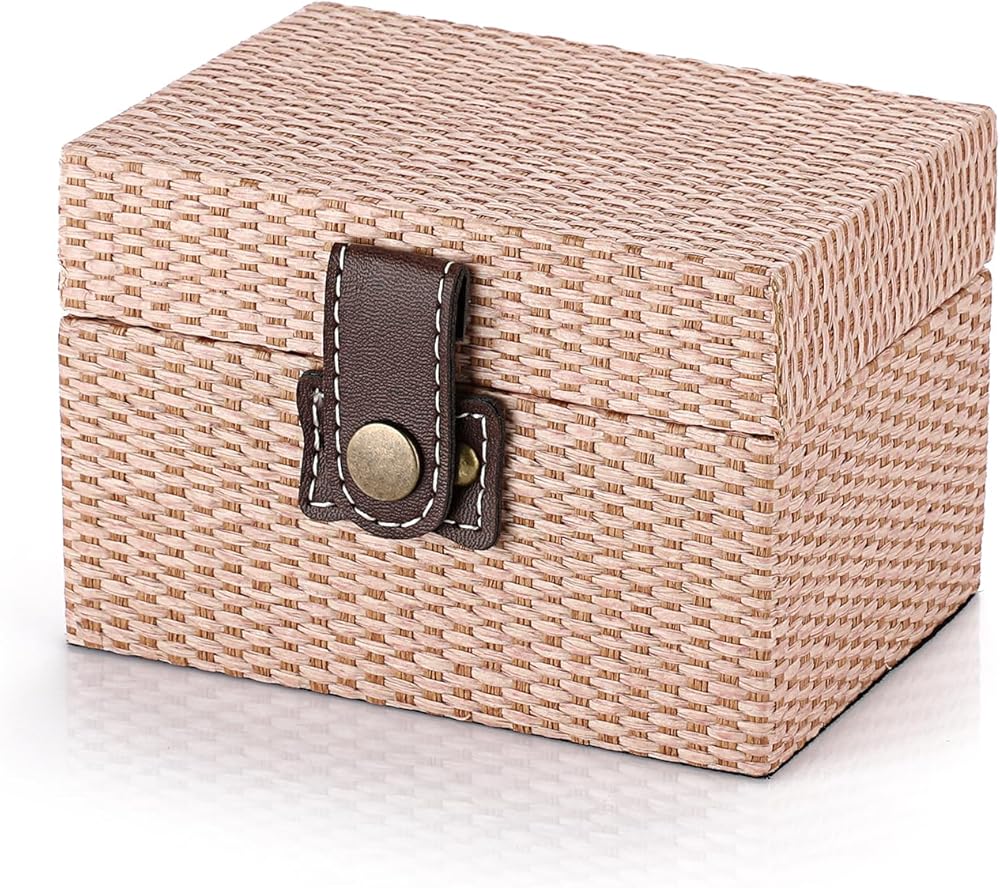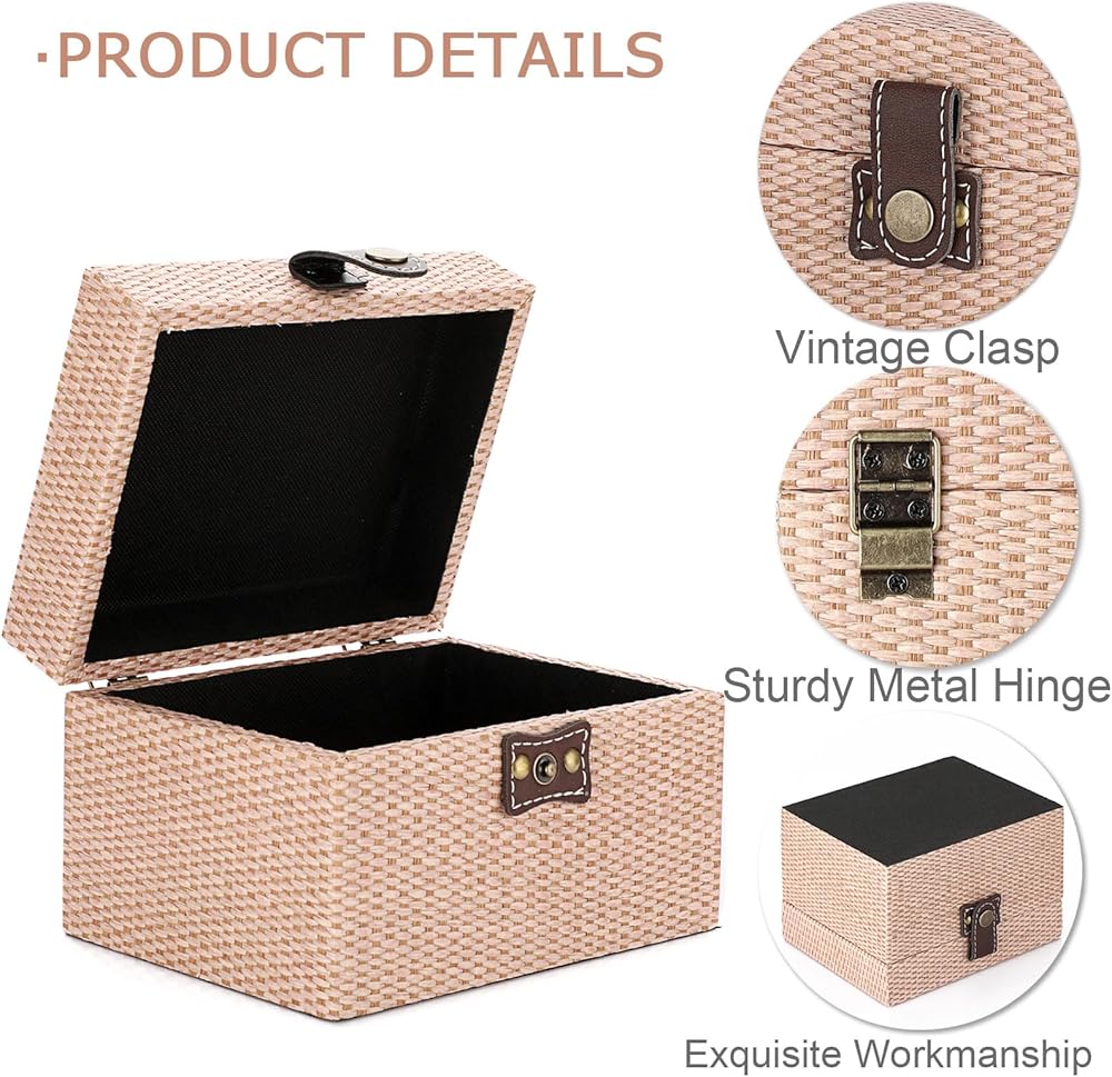 Decorative Box: This wooden lidded box is covered with PE rattan pattern fabric which is carefully crafted, adding a cozy feeling and texture. Come with hinged lid and faux leather clasp to hold your collections securely, make it not only a practical storage box but also a exquisite decorations in your room