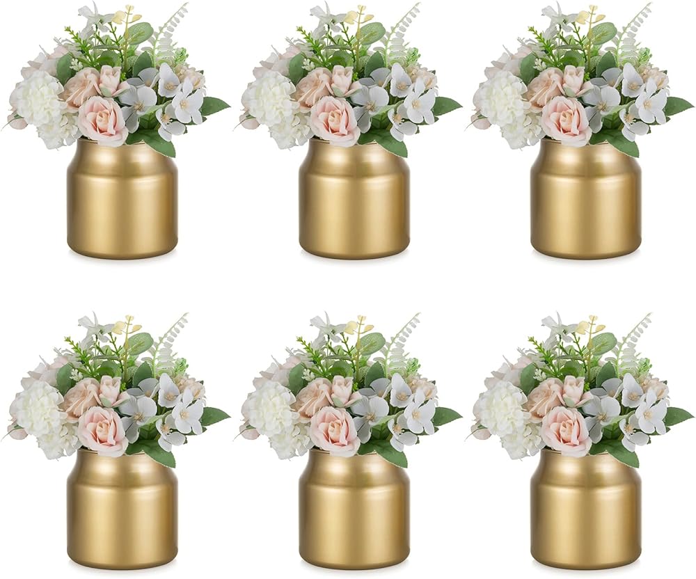 Unleash Your Creativity: NUPTIO small gold vase for centerpeice are the blank canvas a wedding planner dreams of. Fancy a touch of pampas grass, some feathers, plants, artificial flowers, even knife and fork cutlery, these versatile pots let you craft a personalized decor master piece.