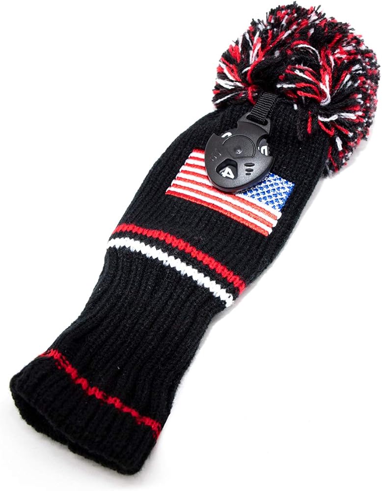 USA Knit Golf Pom Pom Rescue Hybrid Utility Cover Headcover Club Protector with Exchangeale Number Tag Long Neck Patriotism for Taylormade PXG Titleist Callaway Cleveland