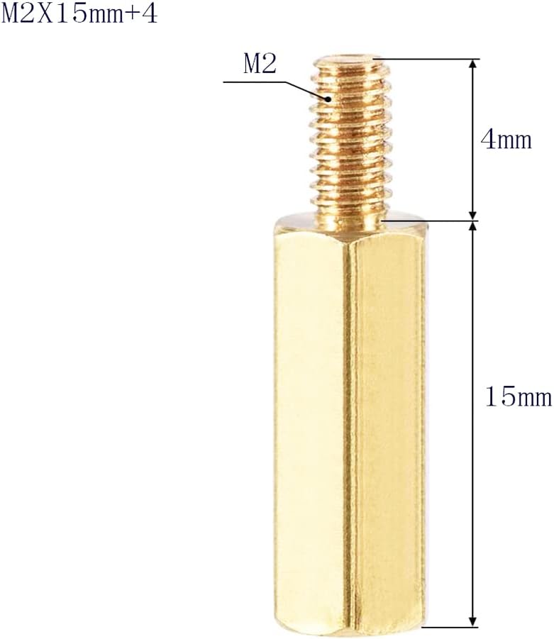 Male to Female Thread Spacer Screws Brass Hex Standoff M2 x 15mm + 4mm PCB Pillar for Drone Quadcopter, Computer & Circuit Board, Pack of 20, Gold