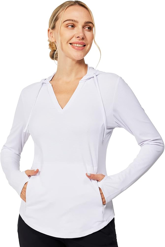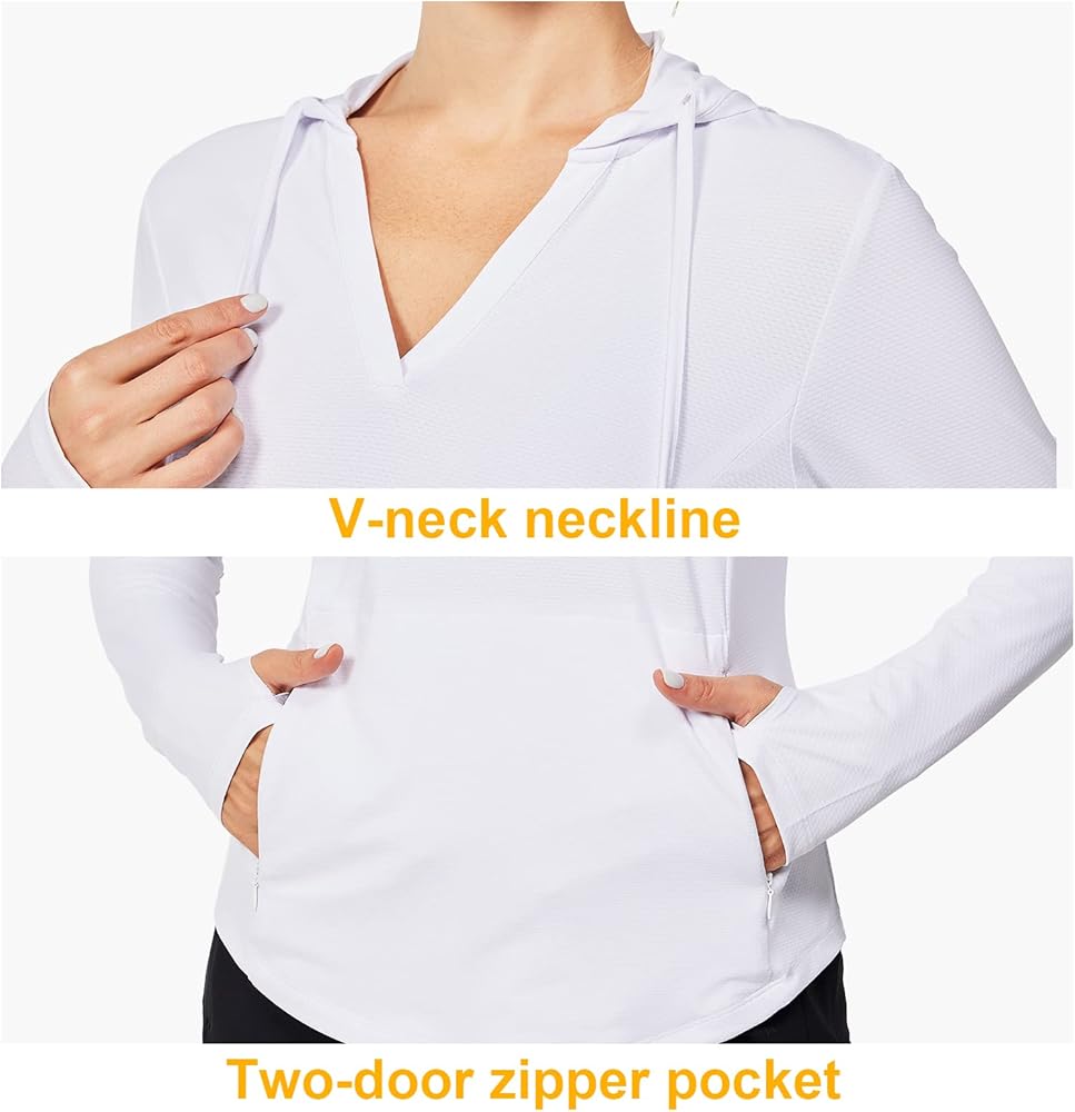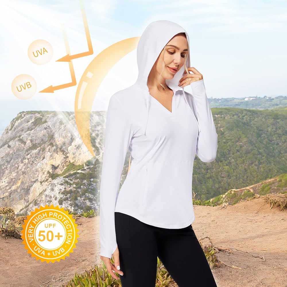 【UPF 50+ Sun Protection and Drawstring Hood】Our women's sun protection hoodie provides UPF 50+ sun protection, blocking 98% of UV rays, and comes with an adjustable drawstring hood and thumbholes for full coverage protection from head to hands for active women who love the outdoors.