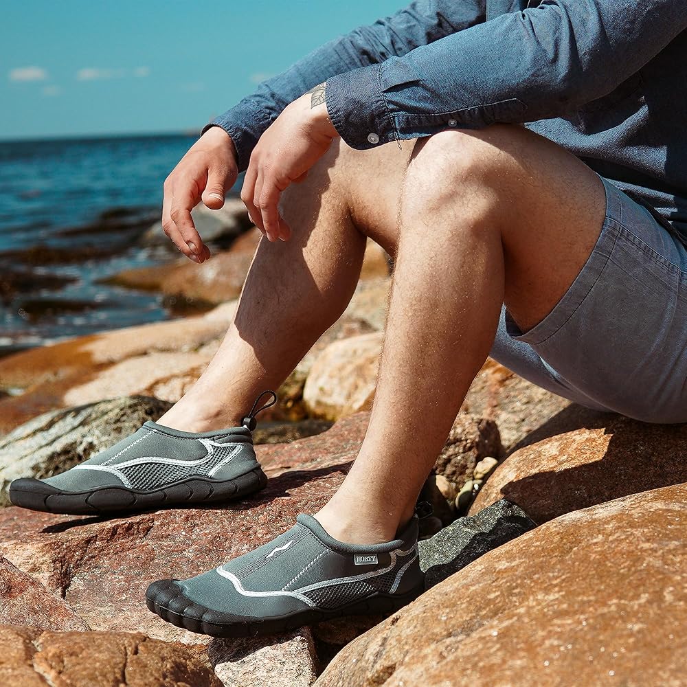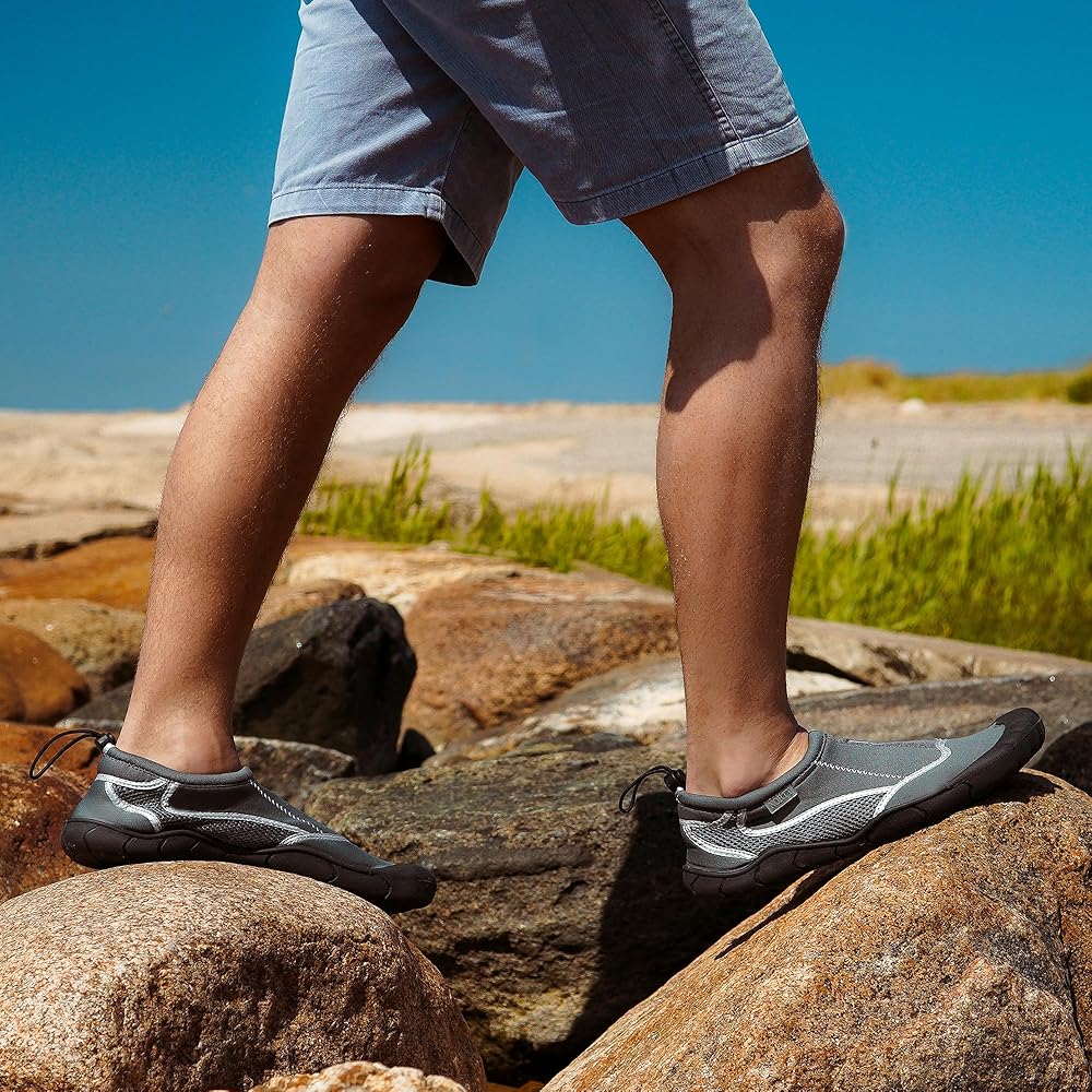 RUBBER SOLE WATER SHOES: These shoes deliver steady footing for those times when you really need it. Whether you're navigating fast-moving whitewater riverbeds or rocky beaches, they have a gripping sole and a stretchy, breathable fit.